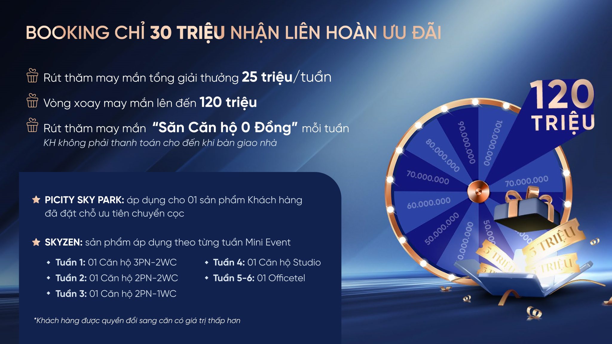 Chính sách mở bán Picity Skyzen tháng 11Vòng quay may mắn Picity Skyzen cho KH booking thành công
