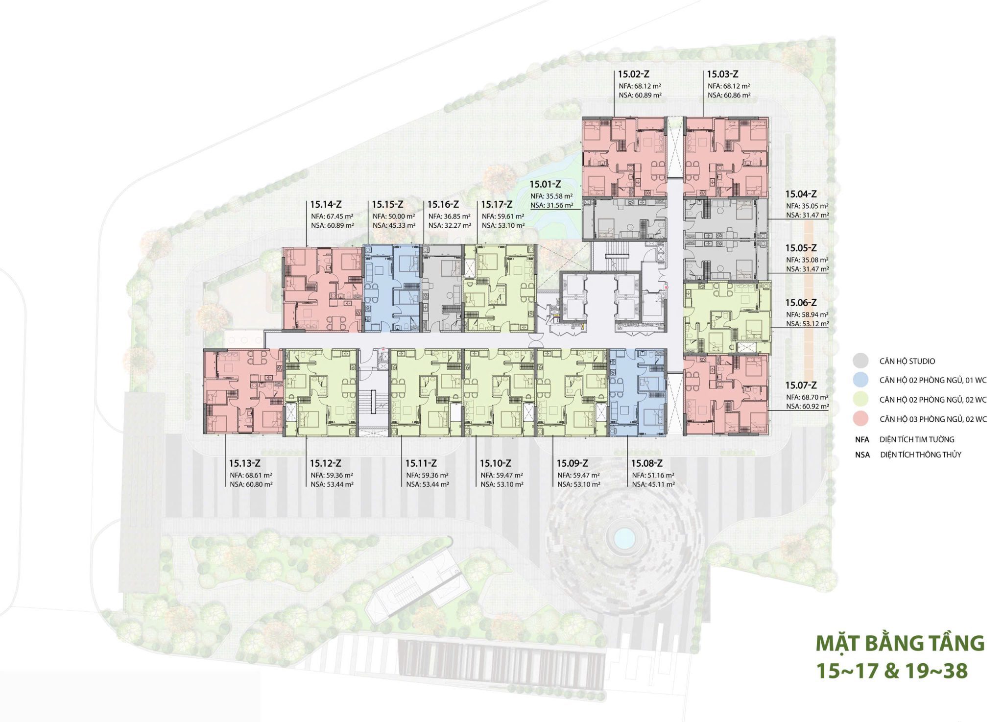 • Căn hộ Studio (36 m²) – Phù hợp với người độc thân, vợ chồng trẻ.