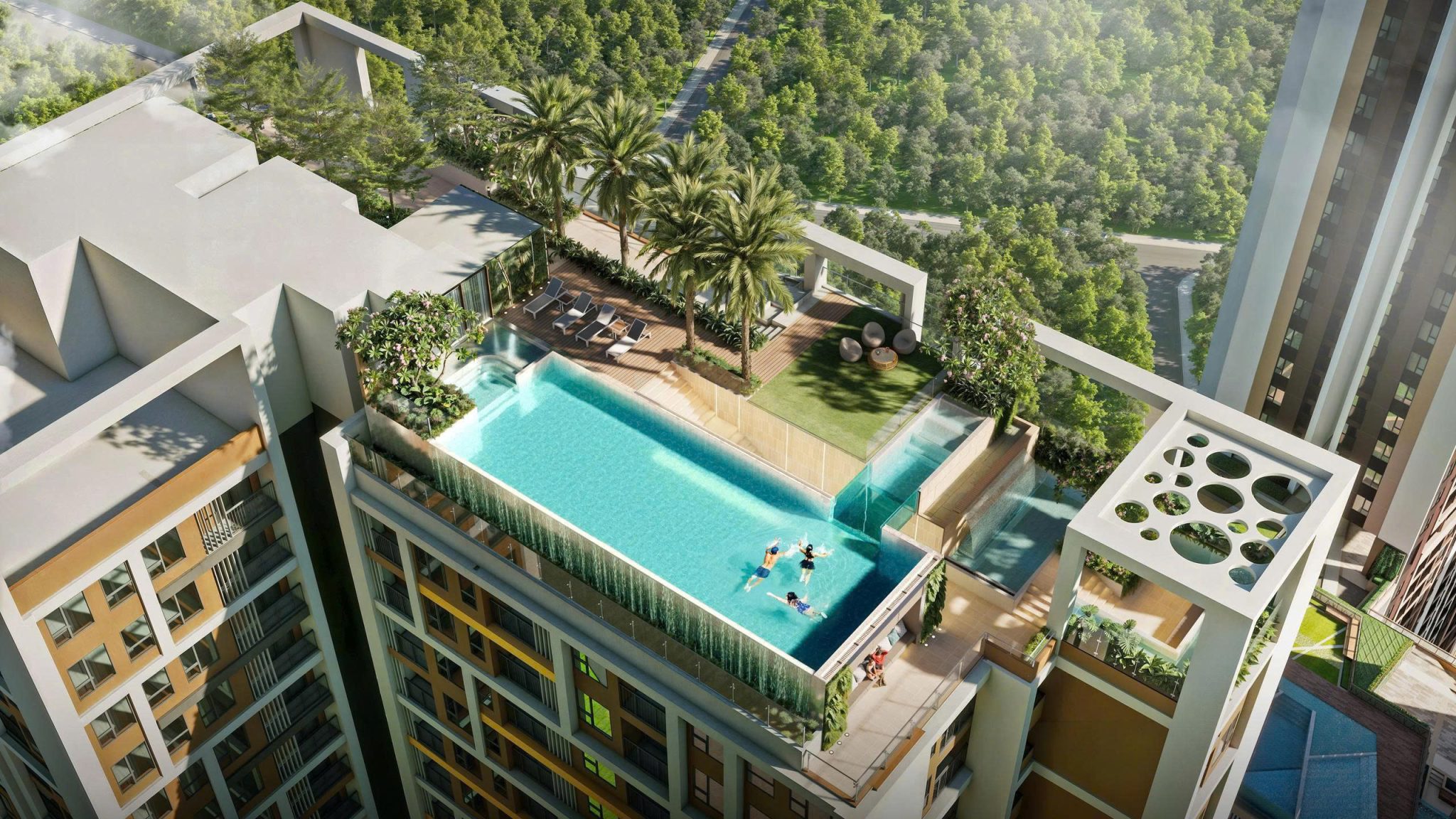 Dự án gồm 1 tháp cao 38 tầng, 2 tầng hầm, xây dựng trên khu đất 3.353m², bao quanh là hệ thống tiện ích sống hiện đại: hồ bơi, phòng gym, khu vui chơi trẻ em, mảng xanh rộng lớn… giúp cư dân tận hưởng cuộc sống tiện nghi và trọn vẹn ngay trong nội khu, không cần đi xa.