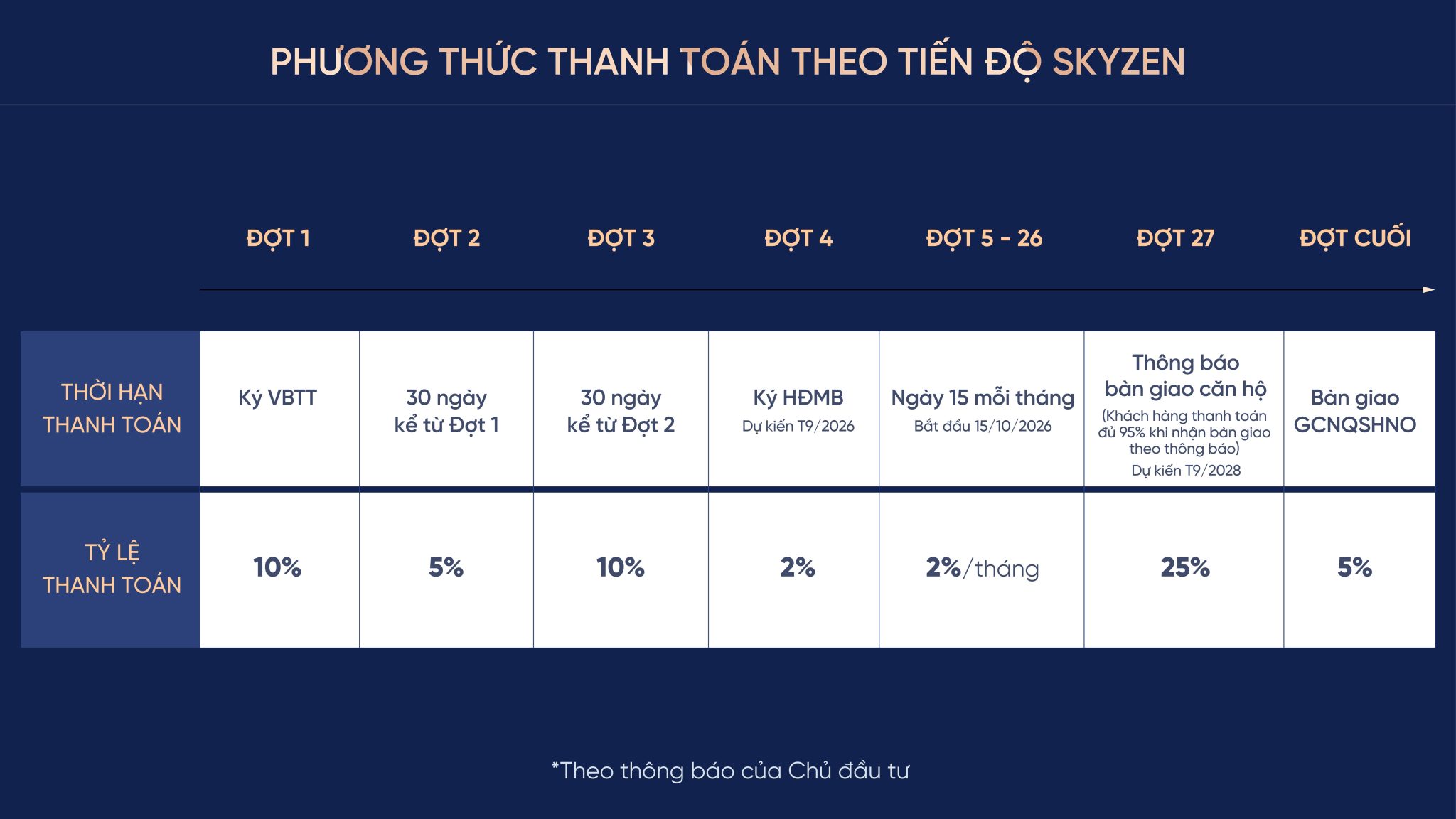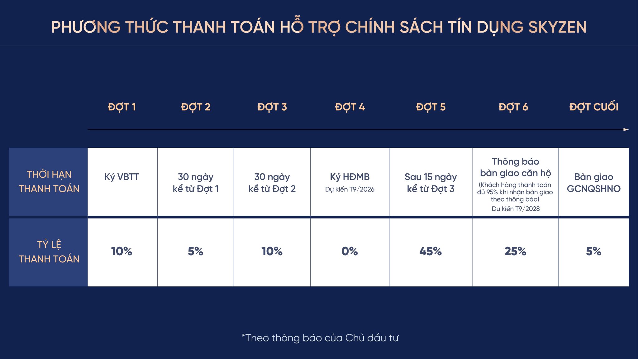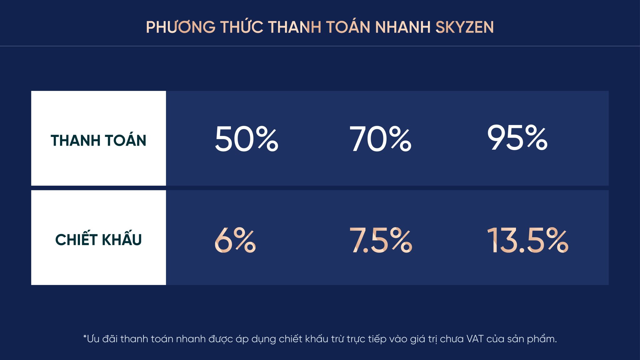 Tiến độ thanh toán Picity Skyzen hỗ trợ lãi suất 0%Phương thức thanh toán Picity Skyzen theo tiến độTHANH TOÁN NHANH Picity Sky Zen chiết khâu tối đa lên đến 13.5%, phù hợp dành cho khách hàng có tài chính